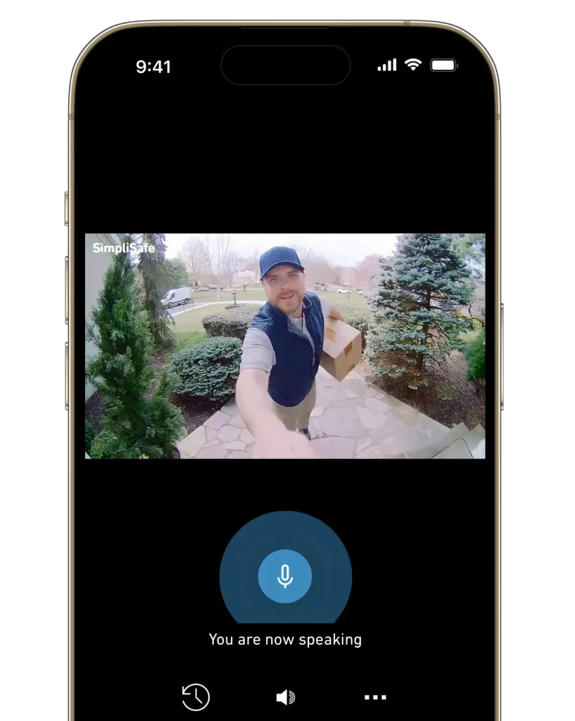 - See and speak to visitors at the door